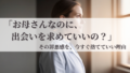 「お母さんなのに、出会いを求めていいの?」と自分を責めていませんか?子供の「変わらないでほしい」という無言のプレッシャーの正体と、自分を解放するための考え方。子供からの「いいんじゃない」という一言に救われた、りこのリアルな体験記。
